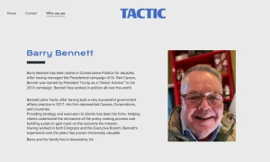 Ryan Coyne, también integrante de Tactic, es el fundador y director ejecutivo de Starboard LLC, una empresa de publicidad creada en 2018, pero fundamentalmente Coyne fue un recaudador de campaña para Donald Trump y en su autobiografía destaca que “mantiene una estrecha relación personal con numerosos funcionarios del poder ejecutivo en casi todos los departamentos de la administración Trump”.