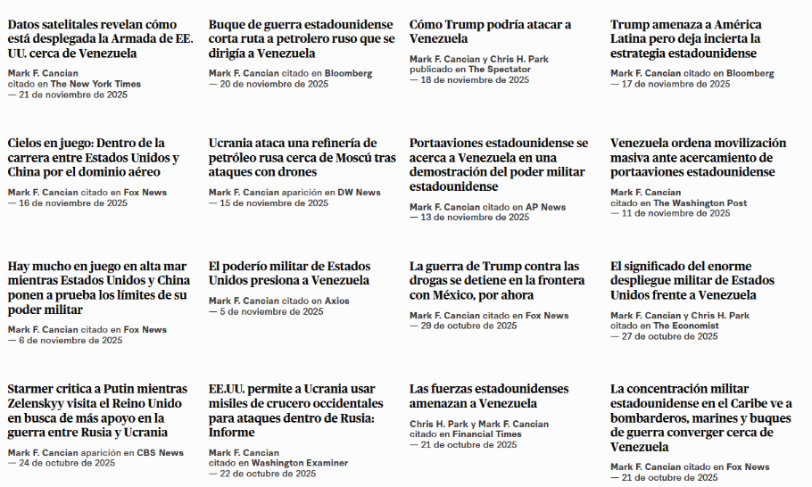 Medios donde la voz “experta” de Cancian es citada para influir en la opinión pública estadounidense, según el CSIS.