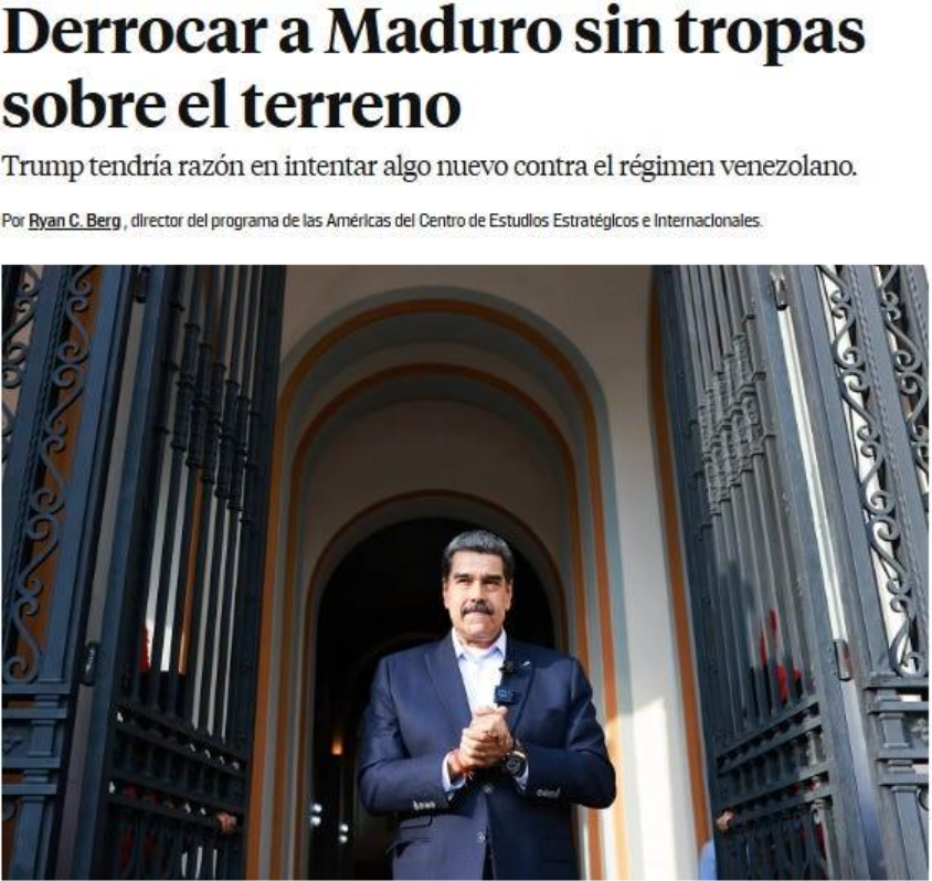 Título de artículo en The Foreign Policy publicado Ryan Berg, director del CSIS para la “Iniciativa para Futuro de Venezuela”