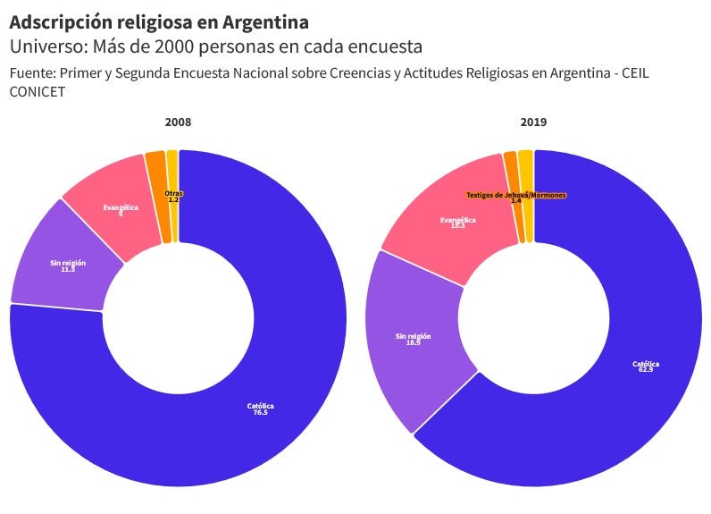 Luego de la Última Dictadura — en la que reinó un control estricto de la institución católica como la principal mediadora religiosa con el Estado — , y con la llegada de la democracia, la diversidad religiosa comenzó a aflorar. A la vez, diferentes cultos comenzaban a reformarse por dentro y a ser cada vez más visibles.