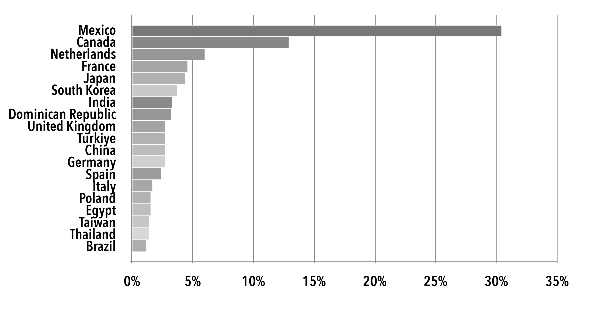 Fuente: Administración de Información Energética de EE. UU., «Exportaciones y reexportaciones de gas natural de EE. UU. por país.»